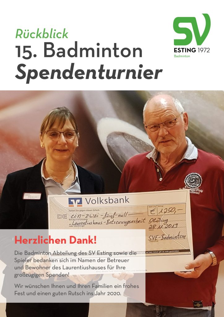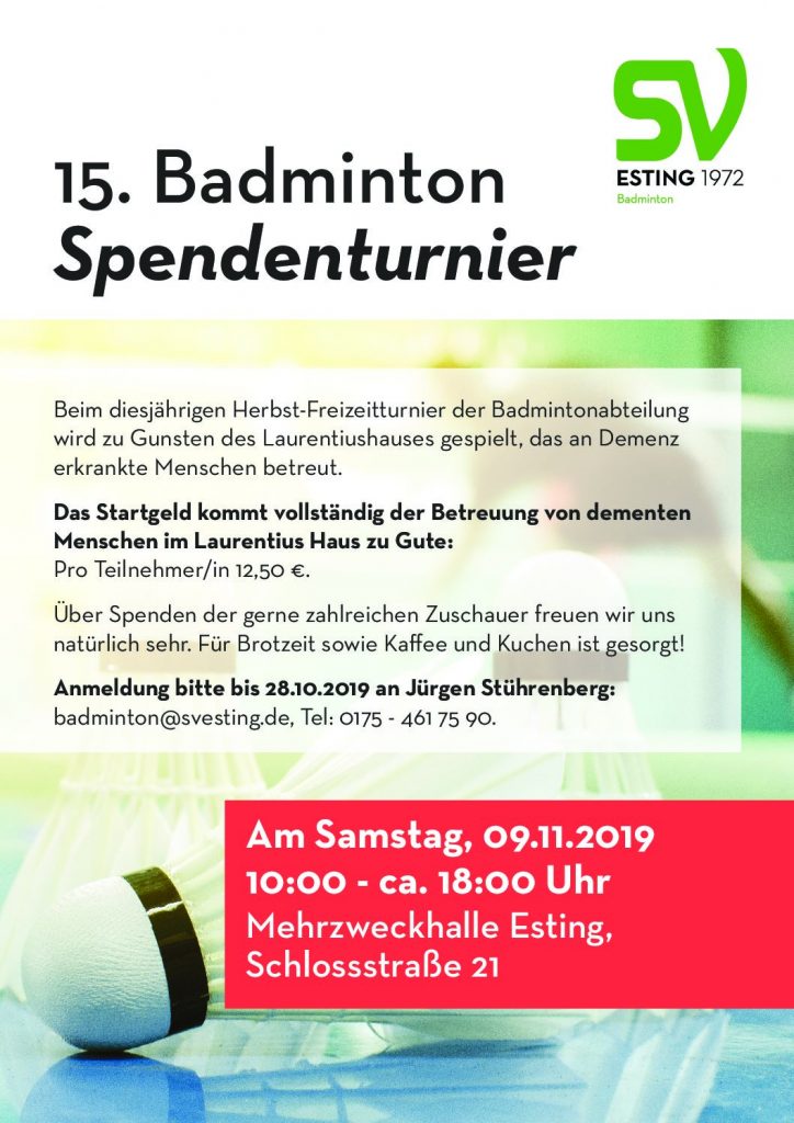 Willkommen auf der Seite der Badminton-Abteilung des SV Esting. Badminton ist die Sportart für alle, die regelmäßig oder auch mal ganz spontan Lust auf Bewegung und Spaß an einem Match haben. Badminton hält fit und die Anfänge hat jeder schnell gelernt. Wir bieten Trainings für Anfänger und Fortgeschrittene, freies Spiel und sind auch im Mannschaftsbetrieb aktiv. Schnuppern ist nach Absprache mit der Abteilungsleitung (badminton@svesting.de) möglich. Kinder und Jugendliche melden sich bei Interesse bitte vorab an jugendleitung.badminton@svesting.de. Wir freuen uns auf Euch!