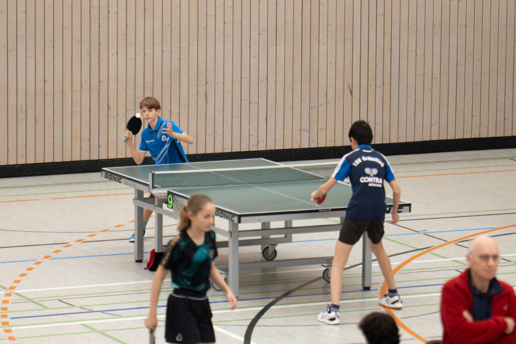 Bei den Jüngsten ging Julian als Mitfavorit ins Spielgeschehen, neben ihm mischten mit Fabian, David, Jonas und Felix noch vier weitere Nachwuchskräfte die Altersklasse auf. Julian und Fabian schafften nach ungeschlagener Gruppenphase und einem Sieg im Viertelfinale den Einzug ins Halbfinale. Das Halbfinale war dann für beide Endstation, sodass sie im vereinsinternen Duell um Platz 3 den Starter für die Verbandsbereichseinzelmeisterschaft ausspielten. In eben jenem Spiel um Platz 3 behielt Julian mit 3:1 (-7, 7, 3, 6) Sätzen erwartungsgemäß die Oberhand. Hinter Fabian auf Platz 4 reihten sich David und Jonas auf den Plätzen 5 und 6 ein. Felix, der sich die Teilnahme über die Qualifikationsturniere gesicherte hatte, belegte bei seiner ersten Bezirkseinzelmeisterschaft mit zwei Einzelerfolgen den 14. Platz.