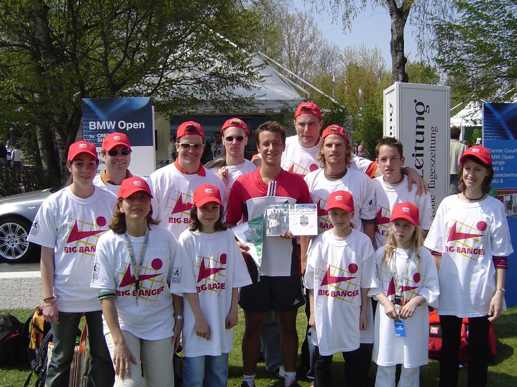 Wirklich außergewöhnlich wurde es aber im Jahr 2004. Da haben wir es quasi zu bundesweiter Berühmtheit gebracht. Bei den BMW Open wurde die Tennisabteilung des SV Esting als Fanclub des damals noch jungen Philipp Kohlschreiber ausgelost. Das hatte noch eine solche Bedeutung, dass die noch schulpflichtigen Teilnehmer an den entsprechenden Turniertagen sogar vom Unterricht befreit wurden. Mit unseren Plakaten und lautstarken Sprech-Chören waren wir mehrfach in den TV-Übertragungen zu sehen und hören. Zitat Kohli damals: „Ich glaube ihr seid mein erster Fanclub!“ Und tatsächlich war er auch in den Folgejahren – immerhin sollte er das Turnier später noch drei Mal gewinnen – immer gerne für Fotos mit uns bereit.